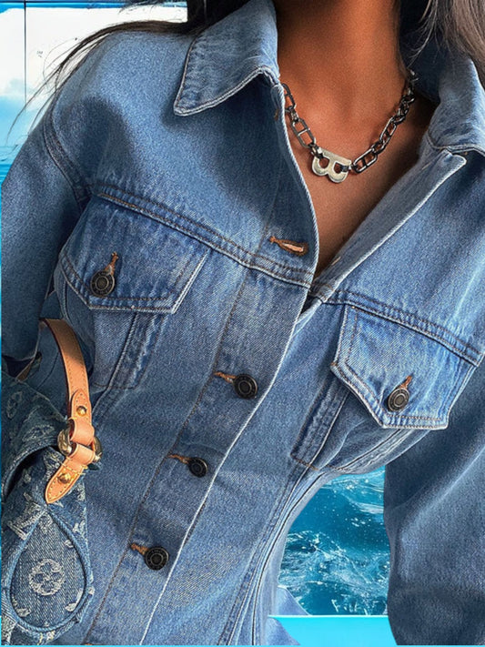 Harper Long Sleeve Cotton Denim Jumpsuit